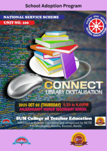 As part of a community service initiative, the NSS Unit of SUM College of Teacher Education undertook the Library Digitalization Project at Ancharakkandy Higher Secondary
