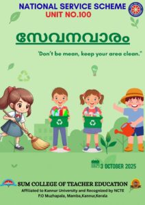 A cleaning drive was successfully conducted on October 3, 2025, under the leadership of the NSS Unit of SUM College of Teacher Education. The area