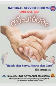 On 3rd October 2025, a heartwarming outreach program titled “Sparsham” was organized by the NSS Unit, IQAC, and SUM College of Teacher Education, with the
