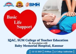 A Basic Life Support (BLS) program was conducted at SUM College of Teacher Education with the support of Baby Memorial Hospital, Chala, Kannur on 12/12/2025